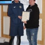 Sam Walker receives his certificate from Samuel Jeffries on 2nd March at Edgeley Park