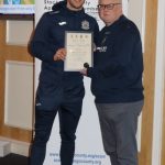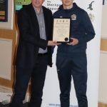 Jamie Stott receiving his certificate from Steve Bradbury at Edgeley Park on 2nd March 2019.