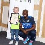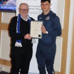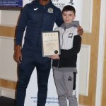 Adam Thomas is presented with his certificate by Ian Watts at Edgeley Park on 2nd March 2019