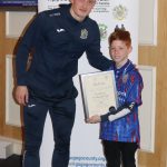 Jordan Keane is presented with his SCAN certificate by Michael White at Edgeley Park on 2nd March 2019.