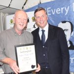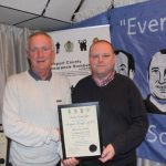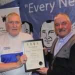 Tommy Spratt’s certificate was presented by Dave Marchbankon 14th November 2015 at 1972-73 reunion inThe Bungalow.