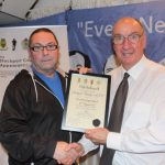 Malcolm Russell’s certificate was presented by Steve Potteron 14th November 2015 at 1972-73 reunion in The Bungalow.