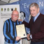 Dave Liptrott’s certificate was presented by John Gaskinon 25th April 2015 at pre-match in The Bungalow.