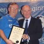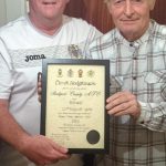 Eddie Garbett’s certificate was presented by Ian Lancashireon 14th November 2015 at 1972-73 reunion in The Bungalow.