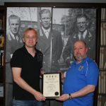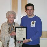 SCAN CERTIFICATE NUMBER 77 Dick Ray’s certificate was presented to his descendant Mick Andrews by Pauline Coddington on 10th October